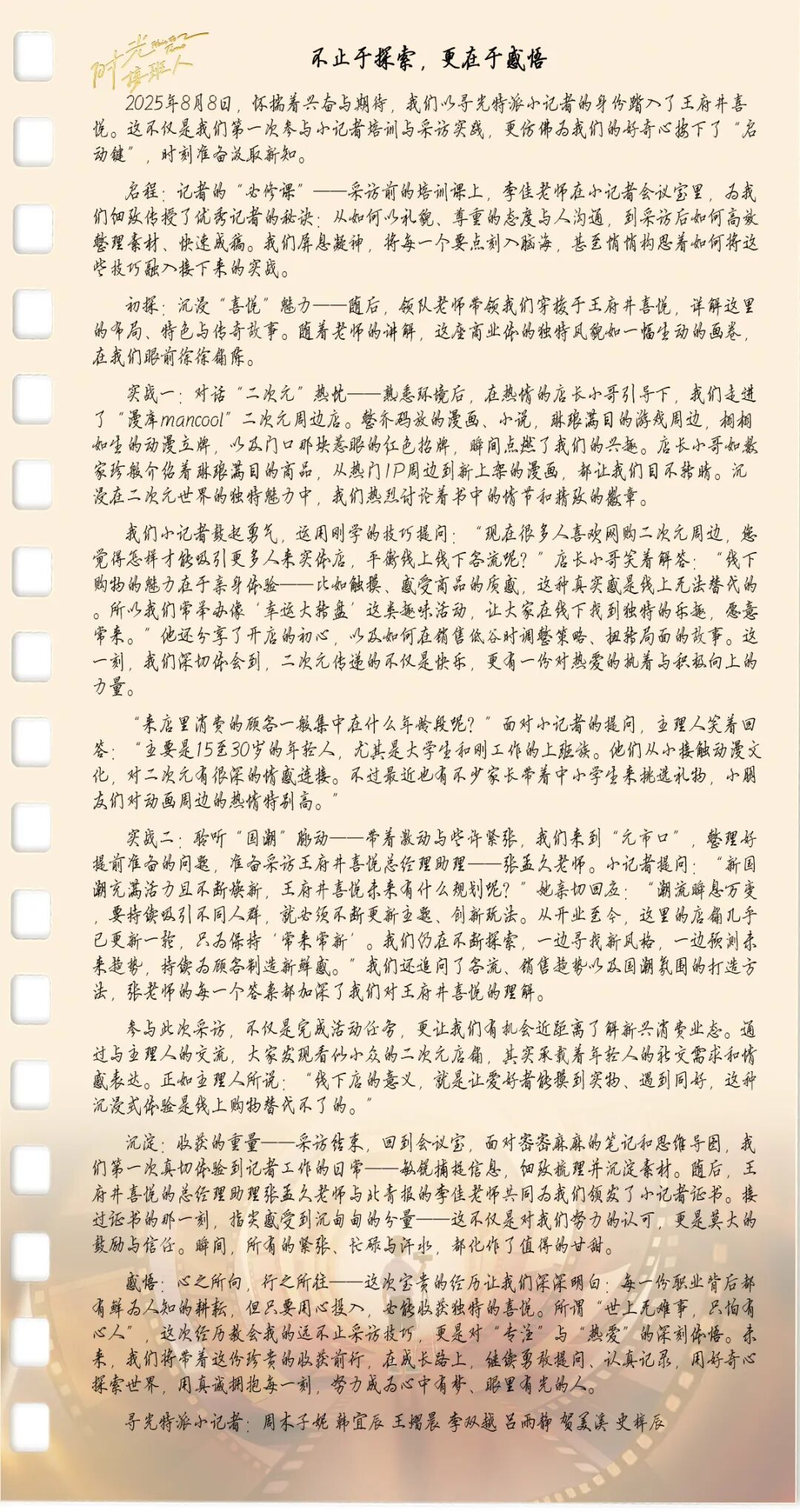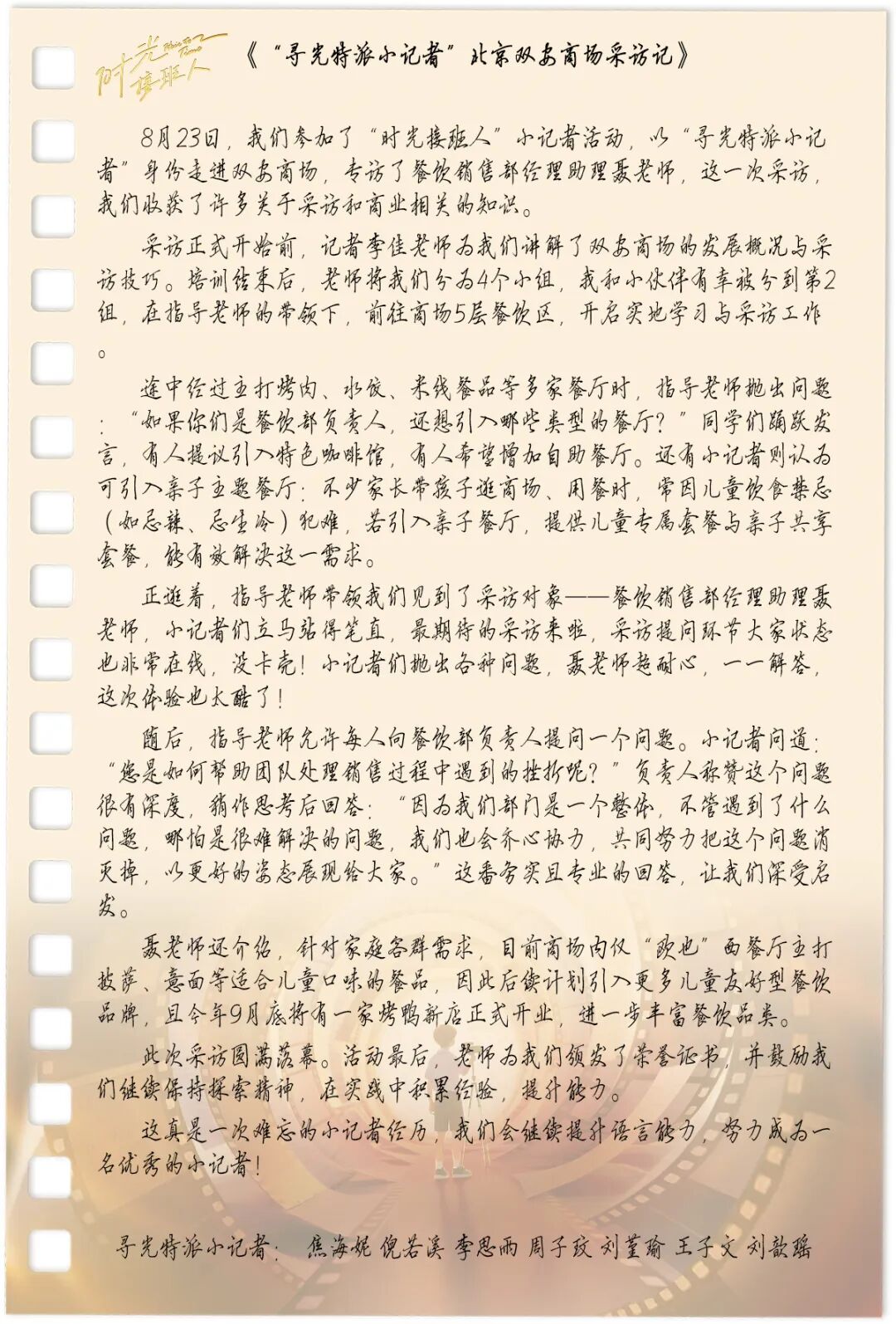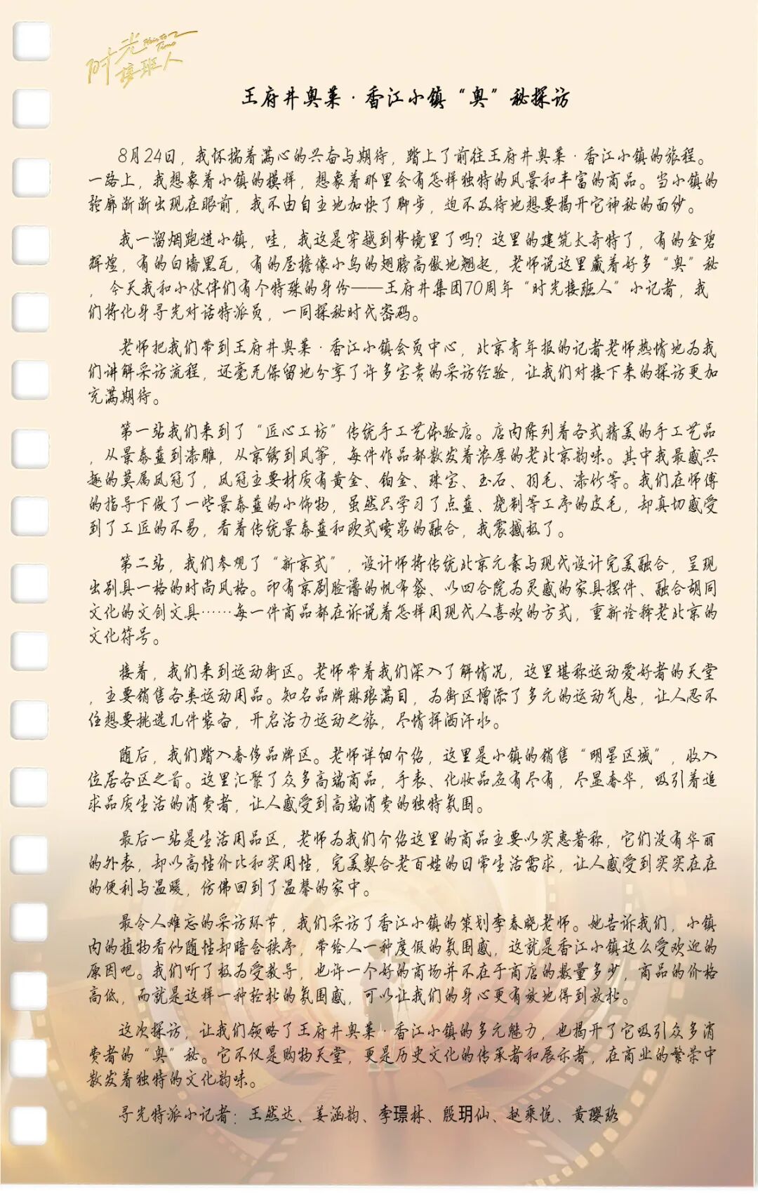 由mg冰球突破官网入口集团、北京日报报业集团主理,,,,,,北京青年报新媒体有限公司承办的“时光接棒人?一起童行话时光”小记者运动日前落下帷幕,,,,,,运动约请约120位青少年以“时光接棒人”的身份探访北京地区四家门店。。。。。。。小记者们在北京市百货大楼深入挖掘一团火精神的起源与生长,,,,,,在mg冰球突破官网入口喜悦解锁新国潮文化与商业密码,,,,,,在双安阛阓探索商业项目焕新之路,,,,,,在mg冰球突破官网入口奥莱·香江小镇体会生涯美学新范式。。。。。。。本次运动不但搭建起mg冰球突破官网入口集团与青少年之间的的时光桥梁,,,,,,让“一团火精神”与商业嬗变价值内核得以代代传承。。。。。。。