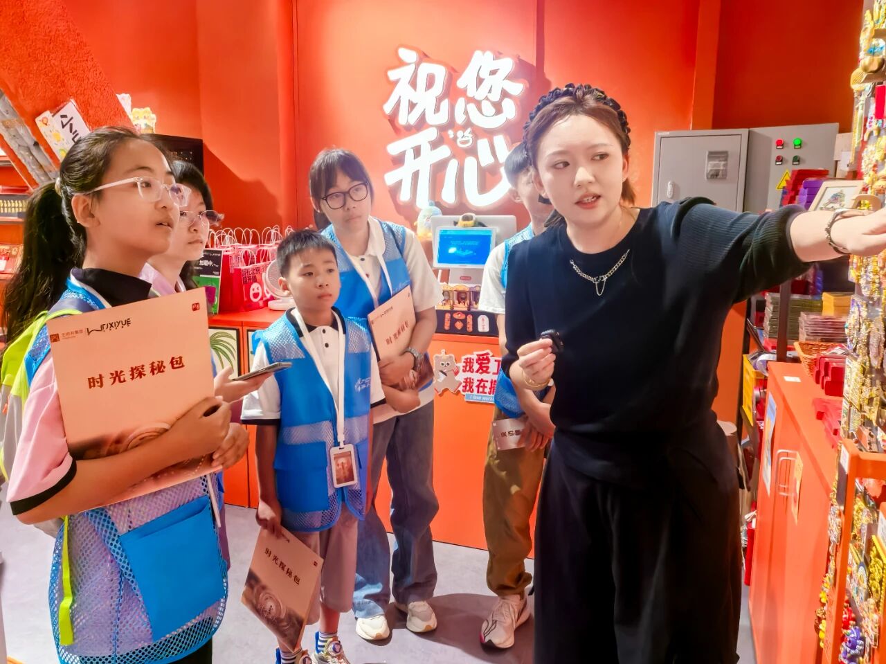 在喜悦新国潮主题空间“XY头条”和其中的二次元主题街区,,,,,,漫库店长为小记者们逐一先容店内各大IP配景及文化,,,,,,国风元素与潮流次元商业的完善融合,,,,,,令小记者们赞叹不已。。。。。。。在文创街区“京物志”和“开心实验室”,,,,,,小记者们探索文创产品的设计创意,,,,,,感受次元带来的快乐,,,,,,在采访中意会“文化美学”。。。。。。。